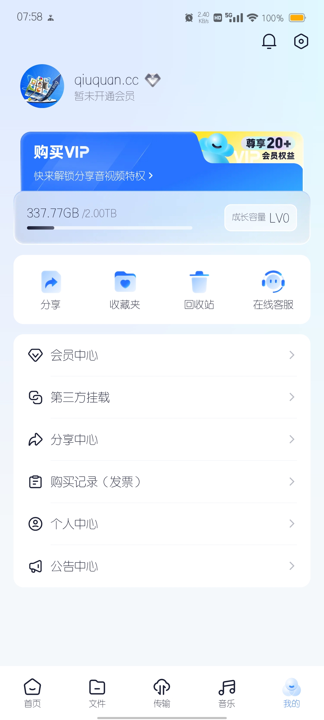 123云盘上传下载不限速,誓将免费极速进行到底 超大2T网盘储存空间永久有效,海量视频照片随意保存 支持100G文件上传,大文件上传专属云盘