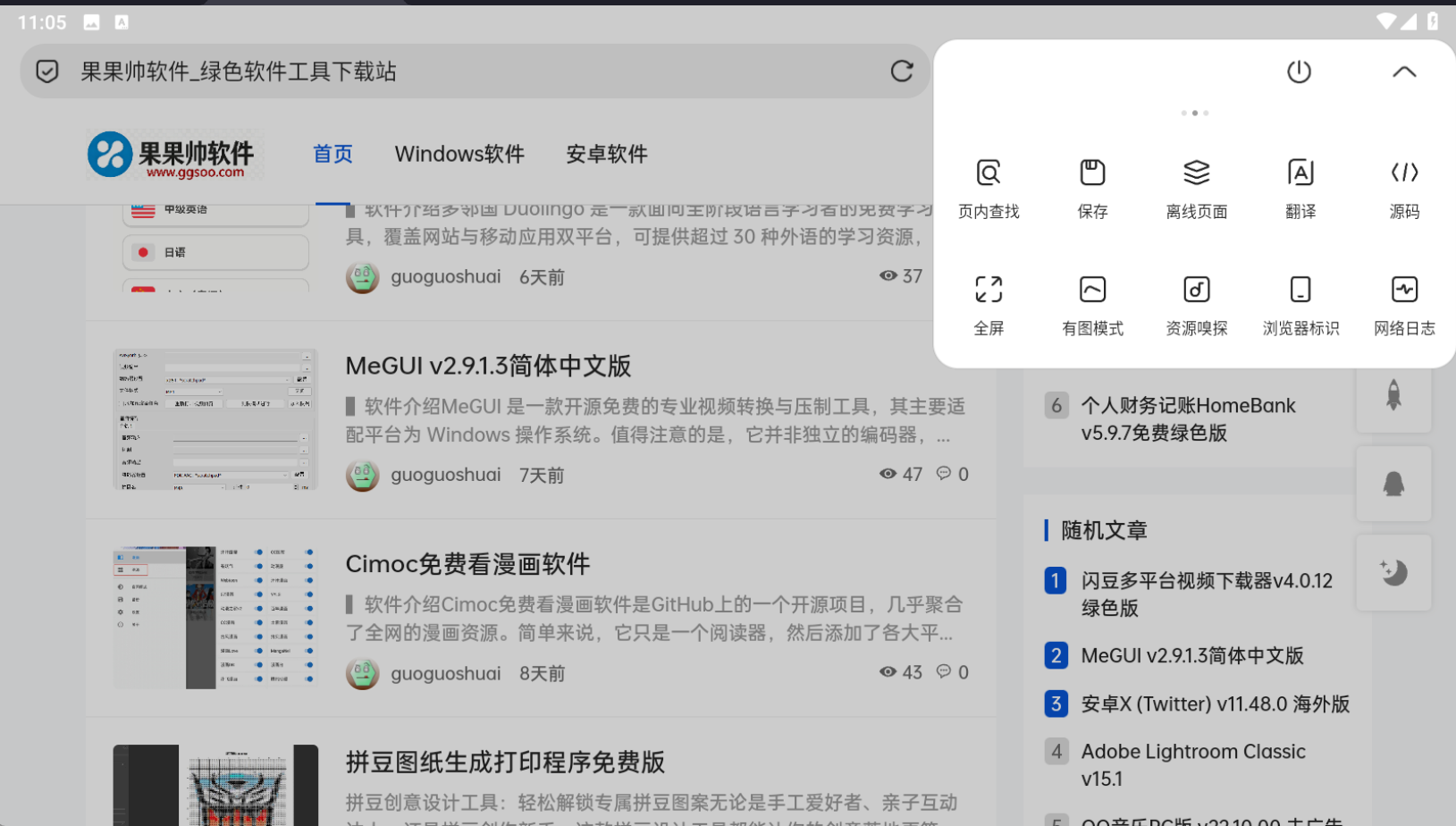 - 支持翻译网页、离线网页、保存网页、查看网页源码、网页资源嗅探、网页内查找等;