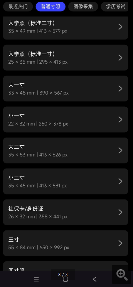 选择需要的尺寸获得证件照的类型,软件将会自动为你